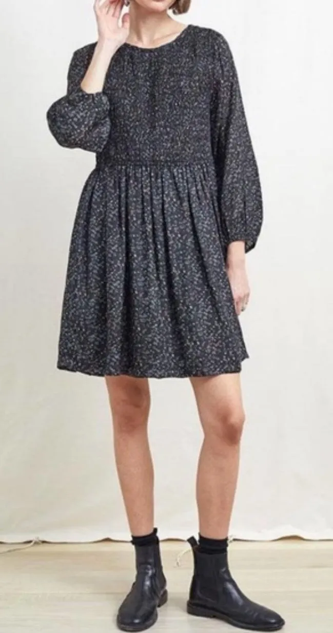 LUXE Women's Charcoal Black Voluminous Gathered Waist Balloon Sleeve Dress sz M Romantic Retro Grung... Show more