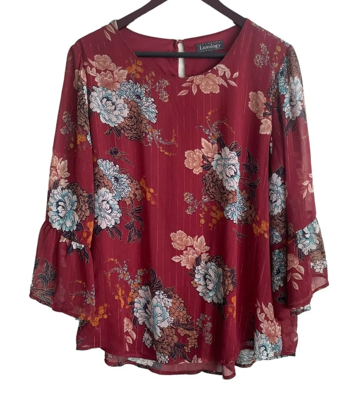 Burgundy Sheer Floral Romantic Boho Blouse XL Preowned - great condition Details: (First picture t... Show more