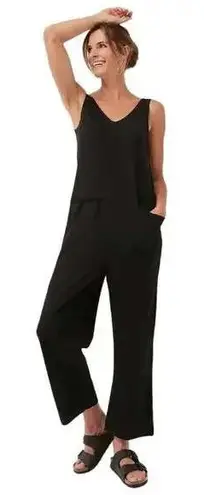 Pact black V-neck sleeveless wide-leg jumpsuit. This comfortable one-piece features a flattering V-neckline, sleeveless design, and convenient side pockets. Crafted from soft, breathable organic cotton, it offers a relaxed fit perfect for everyday wear. Ideal for casual outings, travel, or lounging at home. Department: Women Type: One-Piece Style: Jumpsuit Fabric Type: Knit Theme: Athleisure Material: 100% Cotton Sleeve Length: Sleeveless Pattern: Solid Occasion: Casual, Activewear Set Includes: Pants Number of Pieces: 1 Piece Accents: Pocket Leg Style: Wide Features: Pocket, Lightweight Neckline: V-Neck Approximately 23" pit to pit, 28" inseam, 62" long Excellent pre-owned condition (see pictures for details) Style: Lagenlook Casual Minimalist Leisure Relaxed Sustainable Organic Please reach out with any questions! Super fast shipping