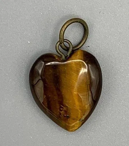 Vtg Heart Shaped Tiger Eye Polished Gemstone Pendant Mothers Day Charm Quartz Colors: Brownish Gold... Show more