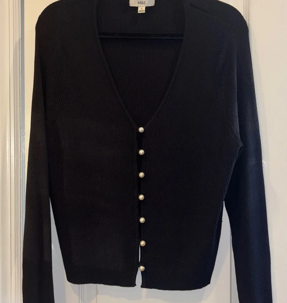 M & S BRAND BLACK SWEATER WITH PEARL LIKE BUTTONS ROUNDED NECKLINE SIZE XL L/S - $32 - From Nancy