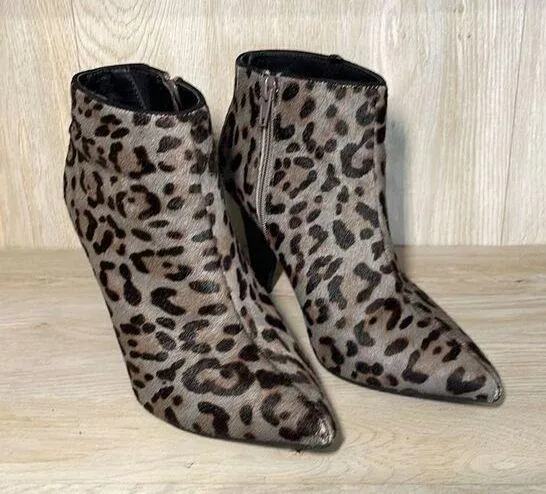 Description: M&S Collection Womens Animal Print Ankle Boots Insolia Heels Tan Leather Size 3. Pointe... Show more