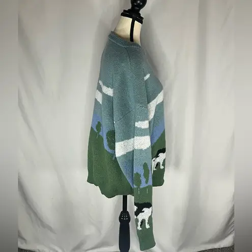 The Manfinity Cow Print Landscape Crew Neck Sweater is a unisex adult sweater featuring a unique cow print design with a Western theme. This pullover sweater has a crew neck neckline and is in size Large. The multicolor design and animal print make it a standout piece for those who appreciate novelty sweaters with a farm or outdoor vibe. Perfect for adding a touch of whimsy to your wardrobe with a cow-themed twist.
