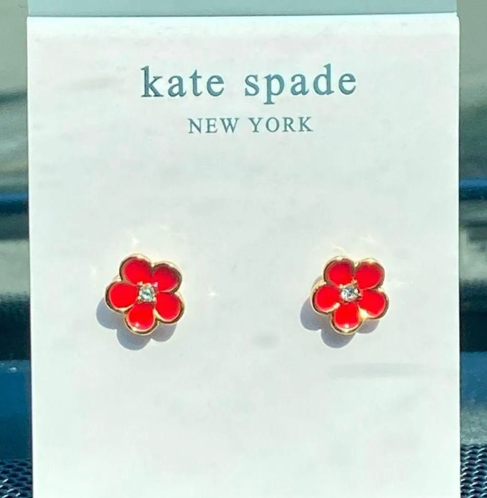 Kate Spade First Bloom Floral Gold w/ crystal. Red Earrings Set. Brand new, unused. On the petite... Show more