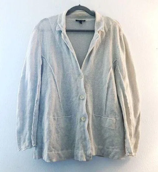 Eileen Fisher Cardigan Tan Button Front Cotton Blend Sz L GUC. Gorgeous cardigan features: - tan, sl... Show more