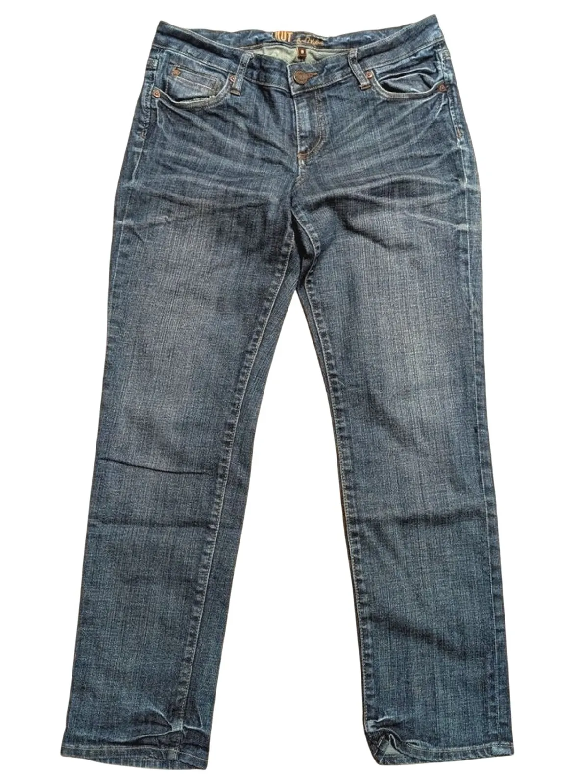 Kut from the kloth, women's size 8, faded wash denim, slim straight leg, great used condition! 98% C... Show more