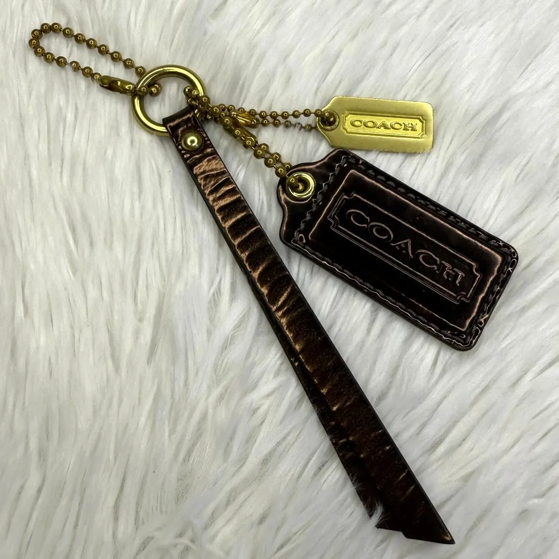 COACH Bronze Brown Patent Leather Hangtag Hang Tag Fob Set Good condition, ready to be added to yo... Show more