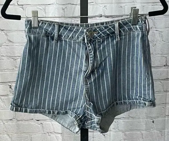 Pinstripe denim shorts 69% Cotton 30% Rayon 1% Spandex Preowned condition: shorts are taken in-... Show more