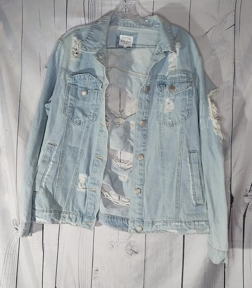 Wax Jean Basic Denim Thrashed Denim Jacket Blue Size M - $40 - From Christina
