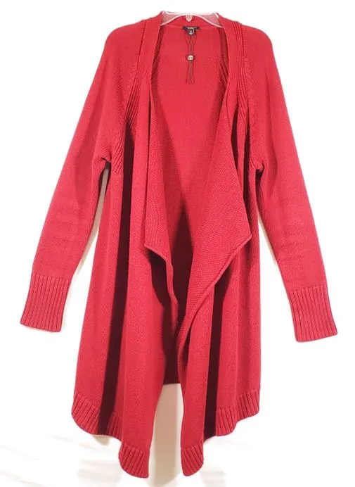 Long sleeve red ribbed open cardigan Size M Condition Pre-Owned 60% cotton 40% acrylic Sleeve: 30... Show more