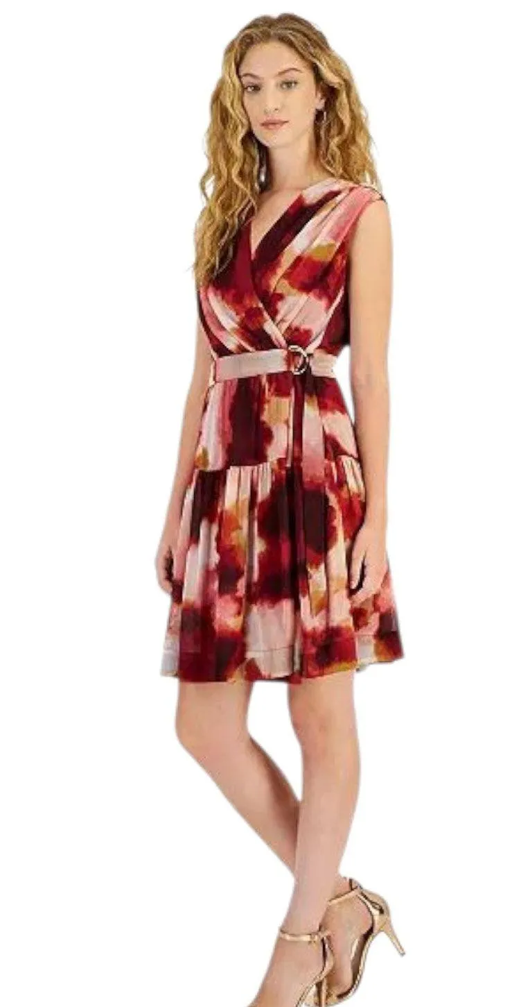 Taylor Women's Wrap Dress Size 14 Multi Tie Dye Chiffon Sleeveless Boho Cocktail Party Wedding Guest Anniversary Special Occasion Church Going Out Business Office Siren Career Wear Church School New with tags. Never worn. Taylor's printed dress makes an impression with a sophistcated silhouette and an adjustable D-ring belt. Fitted through the chest and waist; flared and flowing skirt Chiffon: Smooth, sheer woven fabric Surplice neckline; Fit & flare silhouette Back zip closure Sleeveless Pleated detailing; D-ring belt Lined Bust pit to pit 19". Waist across laying flat 15". Length is approximately 38". Hr 071725