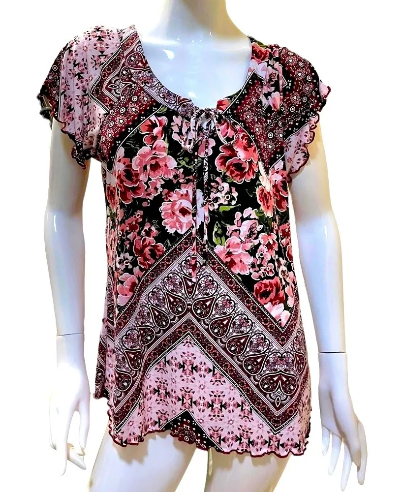 Diana Bell Boho Floral Print Ruffle Short Sleeve Top 2X Pink Size XL - $25 - From Marsha