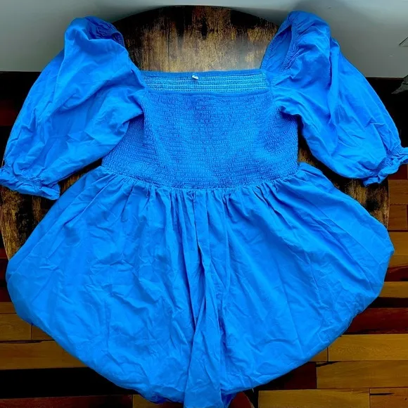 3/4 length sleeve with elastic around the sleeves. Smocked bodice. Skirt is full and above the knee. Cute dress. Brand new, never worn. NWOT. PIT2PIT: 18” stretchy. Length, waist to skirt: 20”.