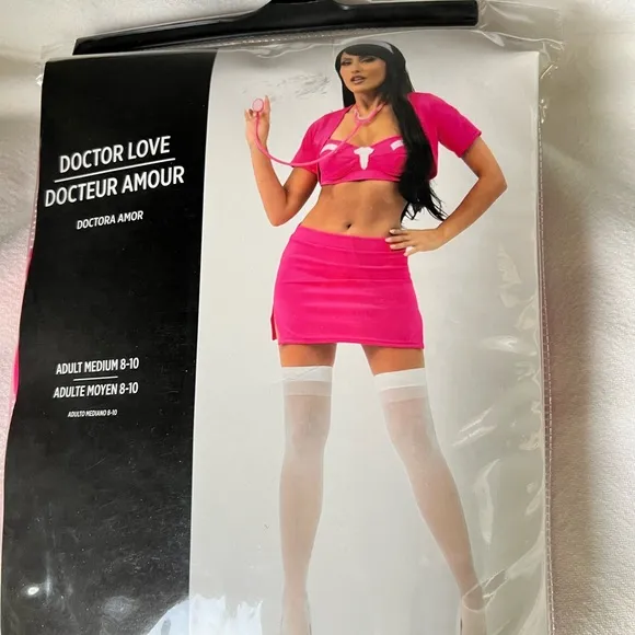 Costume, new seal bag, bag includes 4 pcs top, skirt, shrug, stethoscope, made by modern hero, in China, 96% polyester, 4% spandex, Embrace playful style with the Women's Pink Costume Set. Perfect for themed events, this vibrant pink set adds a fun touch to your wardrobe.