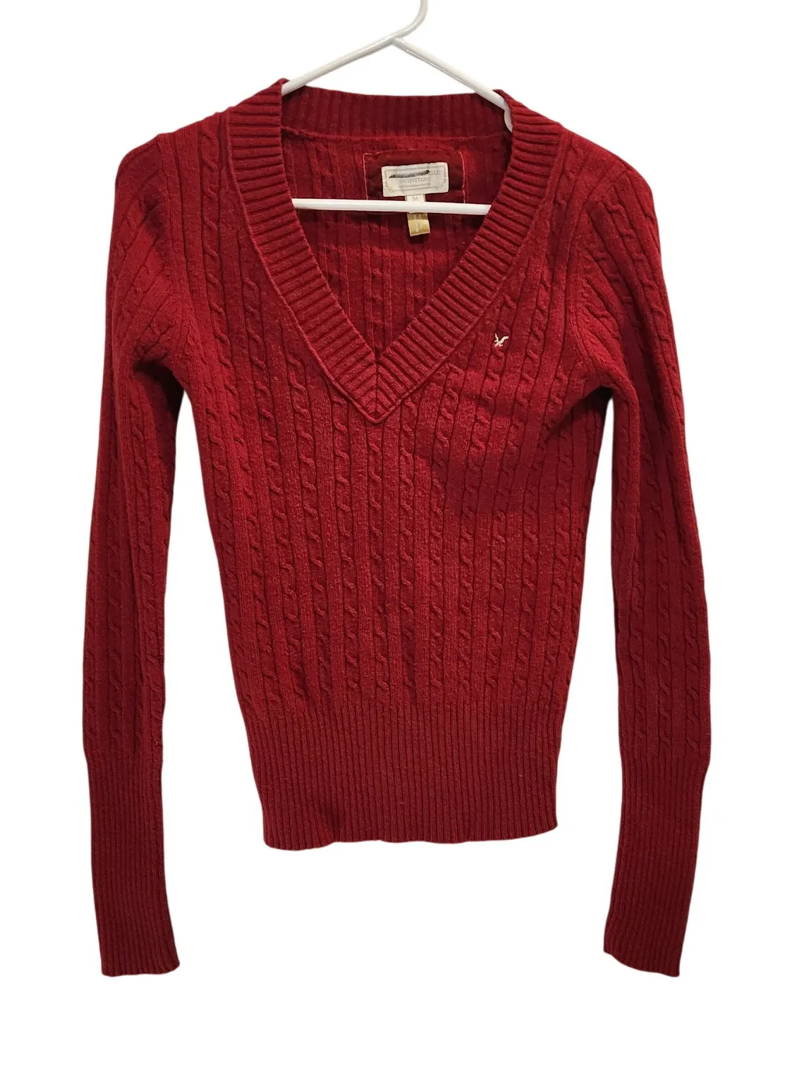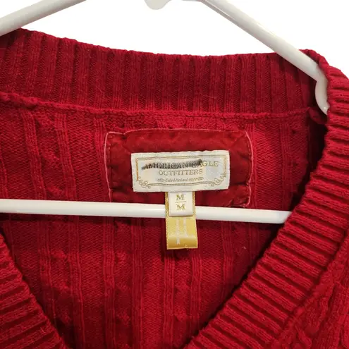 Great used condition A timeless cozy staple, this American Eagle V-neck cable knit sweater in vibra... Show more