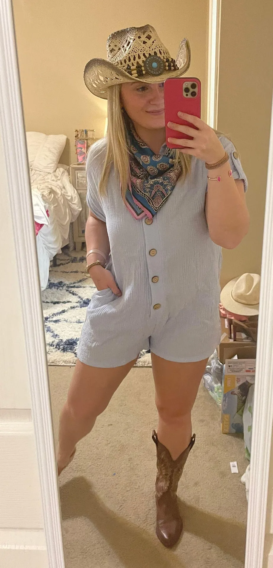 Baby Blue Short Sleeve Romper Size L - $25 (61% Off Retail) - From Samantha
