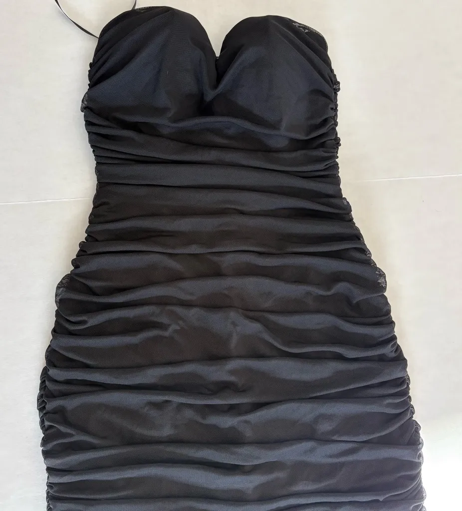 Mable Size small solid black sweetheart neckline corset style strapless ruched pencil dress bodyco... Show more