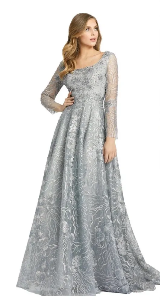 Mac Duggal 20285 Scoop Neck Beaded Lace Dress sz 10 Gray - $207 New With Tags - From Aggie