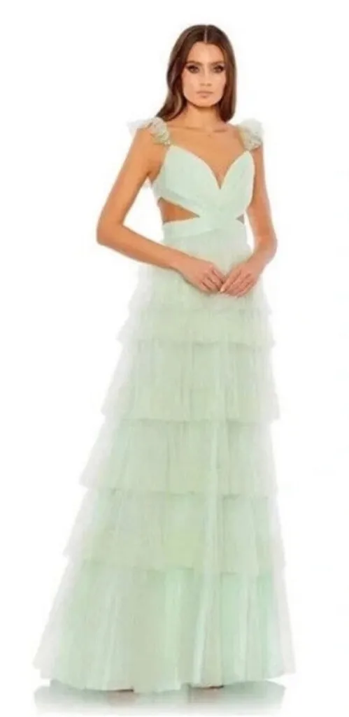 Mac Duggal 50670 Ruffle Tiered Tulle Cut Out Gown in Mint Green Size 4 - $109 New With Tags - From Aggie
