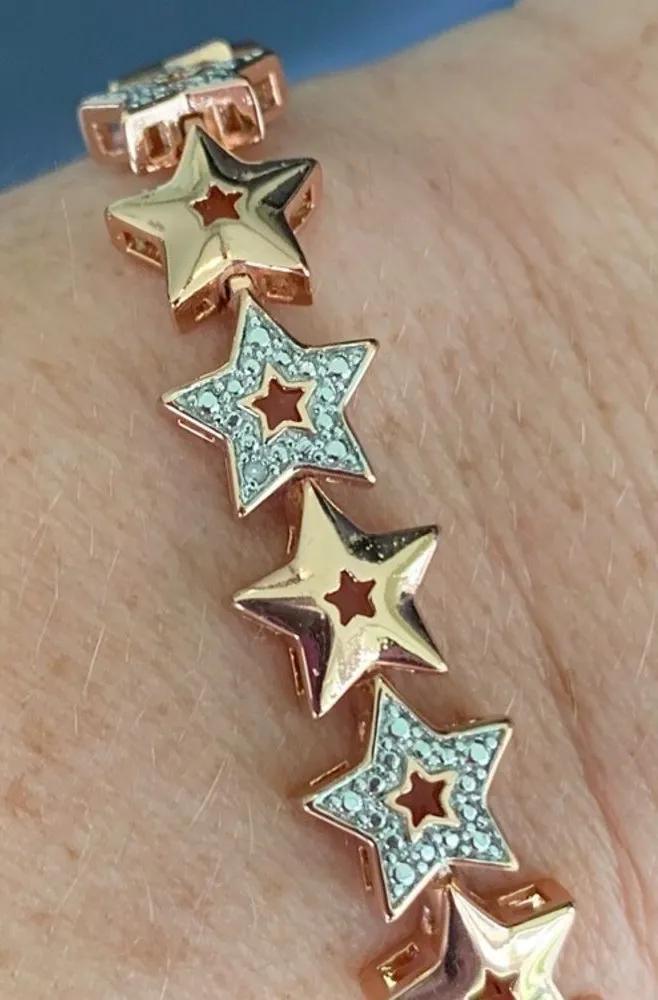 RETAIL: $100 STYLE: 18KRG/SS PLT DIA STAR RO Bracelet SIZE: 8β CONDITION: New With Tags