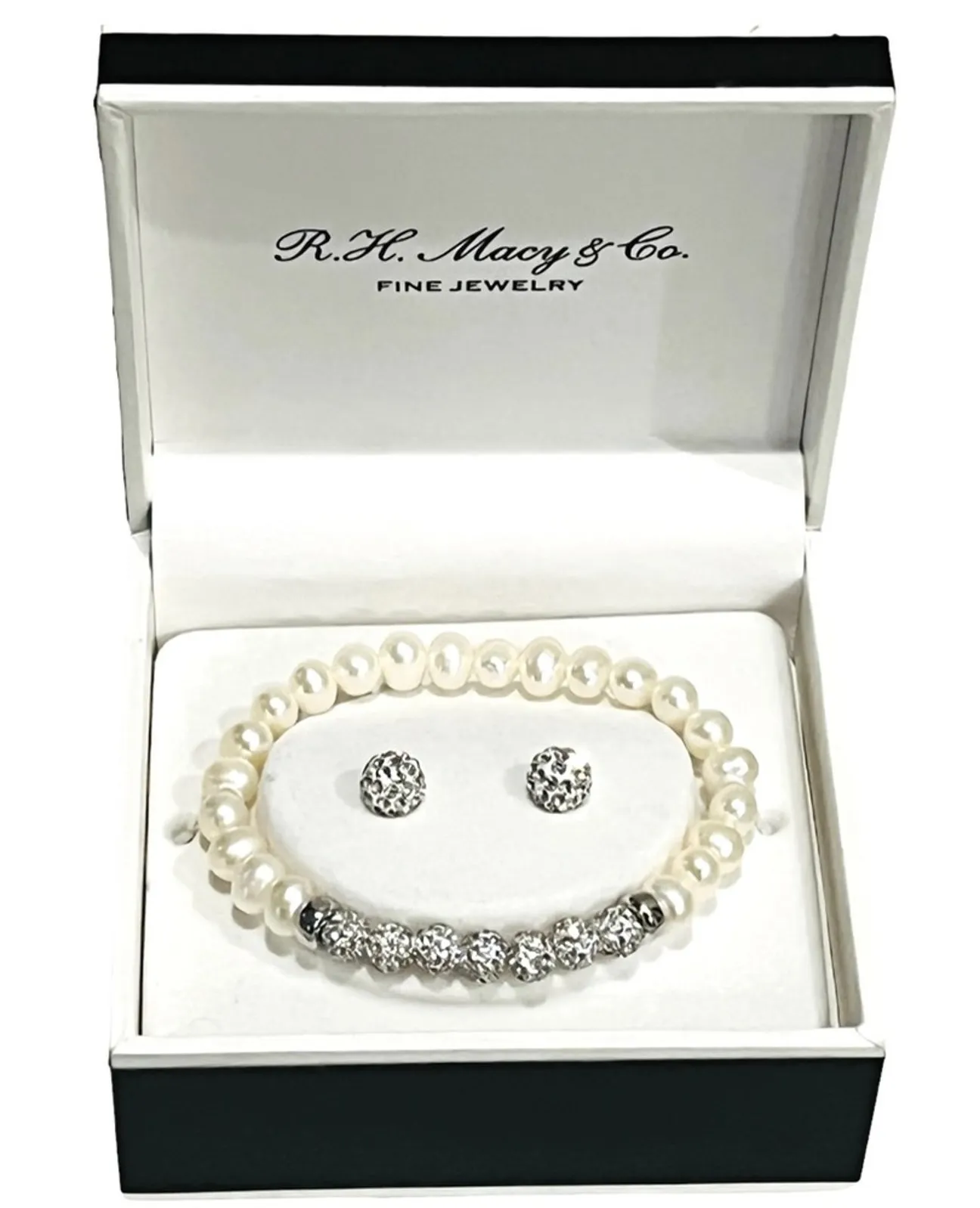 R. H. Macy & Co. Fine Jewelry Sterling Silver Fresh Water Pearl BRACELET + EARRINGS Crystal Pave -... Show more