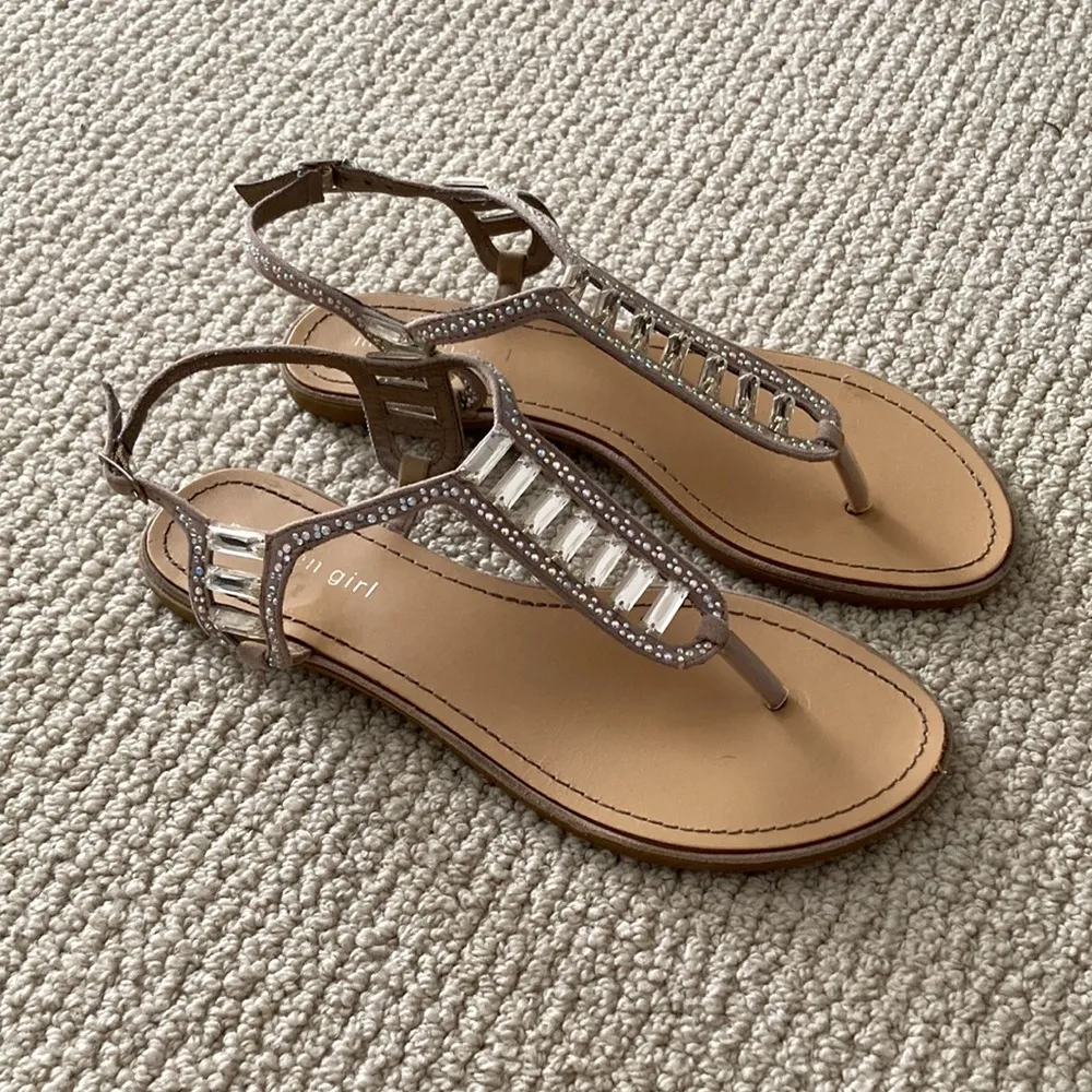 Madden Girl Bejeweled Formal Thong Sandals Nude Sparkly Prom Size 8 Like New Excellent used conditi... Show more