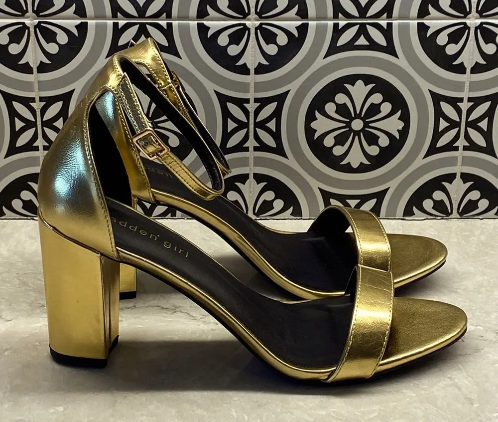 Madden Girl Women's Beella NEW Color: Gold Size: 10 Heeled Sandal Ankle Strap All Man Made Materia... Show more