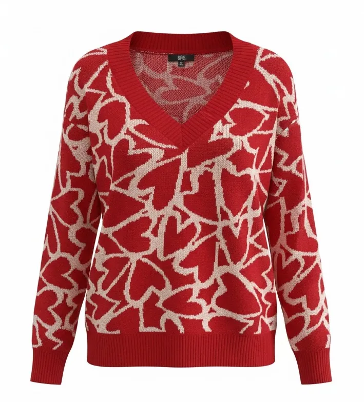 Madden NYC Women Sweater NWT Size XS Red White Heart Print Relaxed Fit V-Neck - $15 New With Tags - From Denise