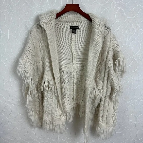 Madden NYC Womens Ruana Sweater OS Cream Open Front Fringe Cable Knit Poncho Product Description: M... Show more