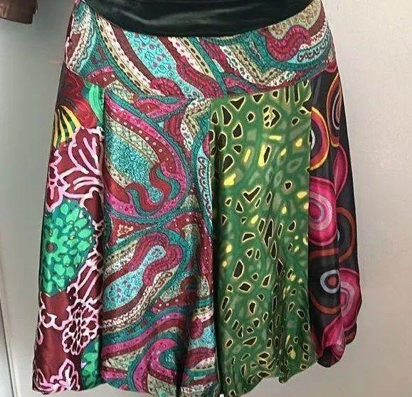 Excellent preloved condition - Indian All Together Boho Indy Floral Print Bubble Hem Mini Skirt This skirt features wide waistband, hidden side zipper, bubble hemline, and is fully lined. Multi-Colored Indy inspired florals, paisley, geometric and abstract designs in beautiful rich jewel tones. Perfect skirt for dressing up or pairing with denim. Measurements approximately: Waist 29” Length 18” Due to lighting item’s color may vary slightly from pictures. Thanks for checking out my listing.