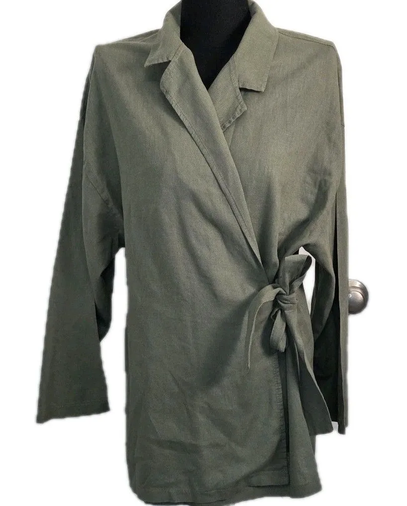 Excellent pre-owned condition (see pictures for details) Features - Style Profile : Laura G Made In Italy Wrap Top 3/4 sleeve Linen Cotton Blend - Flaws - no holes, stains or tears - Please see photos for measurements (in inches) - Happy to answer any questions - Washing Instructions: hand wash only Size : M Med Medium Color : Olive Green Tags : sustainable Italy Linen Cotton Capsule Wardrobe lagenlook Eathy Fairy Warm Fall Comfort Smoke free | pet friendly home- not stored where pets have access Fast shipping! Usually next business day!