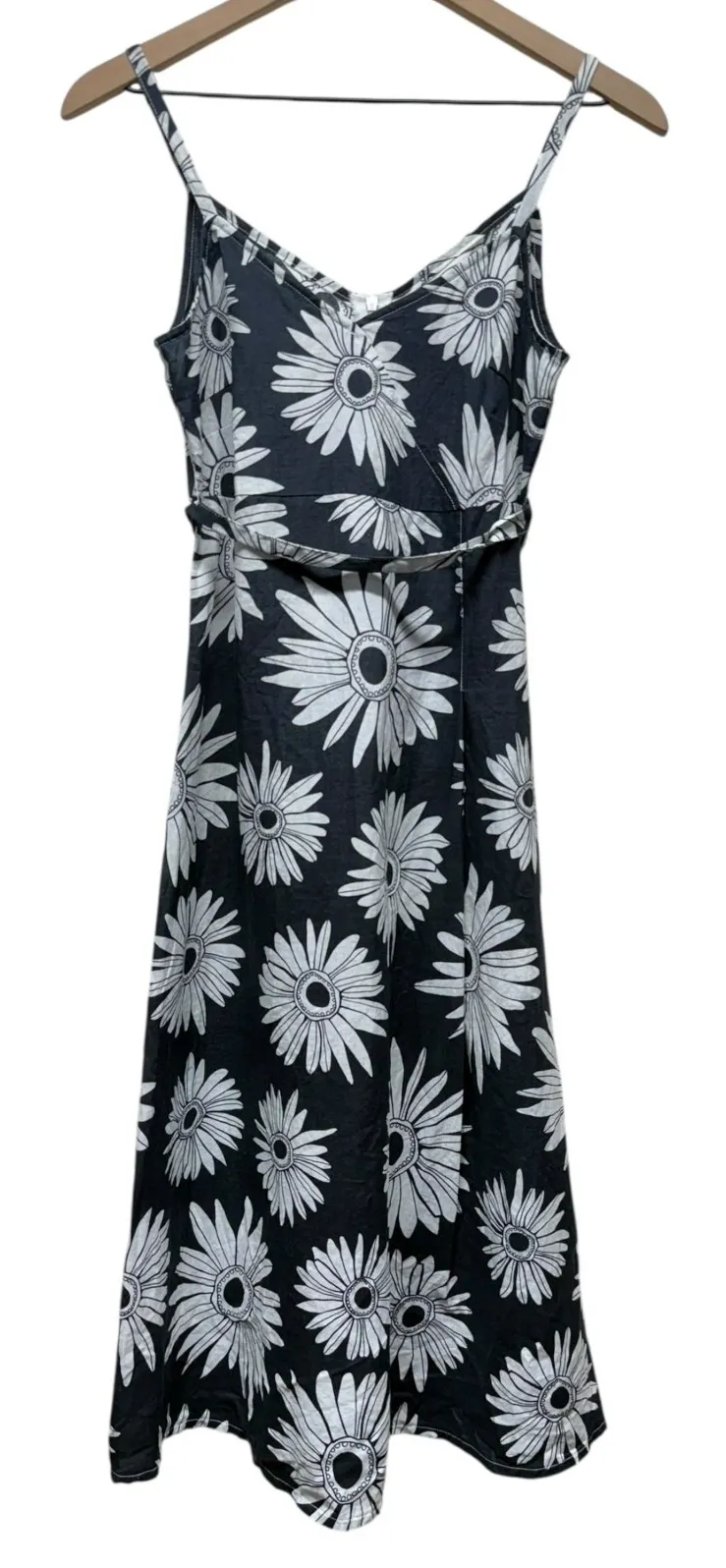 Made In Italy Womens XS 100% Linen Dress Blue White Floral‎ Sleeveless Belted - $32 - From McKinley
