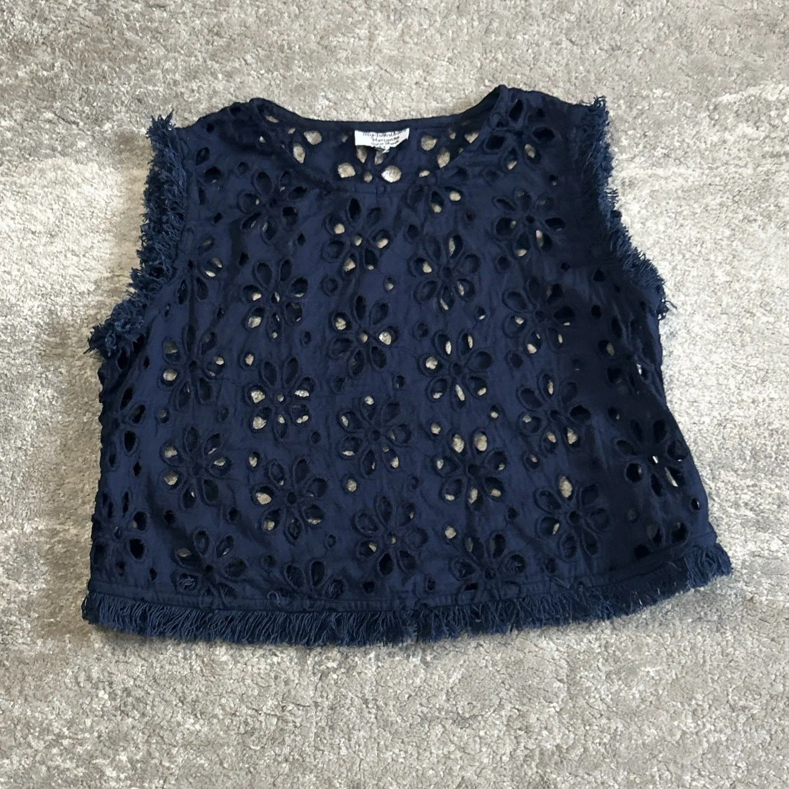 Mademoiselle Hortense Saint Barth Top Women Medium Navy Crochet Open Fringe Crop Blue - $30 - From kelli