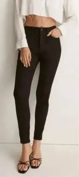 Madewell 10" High-Rise Skinny Jeans in black frost wash, 26 Please note: some lighter colored stripe... Show more