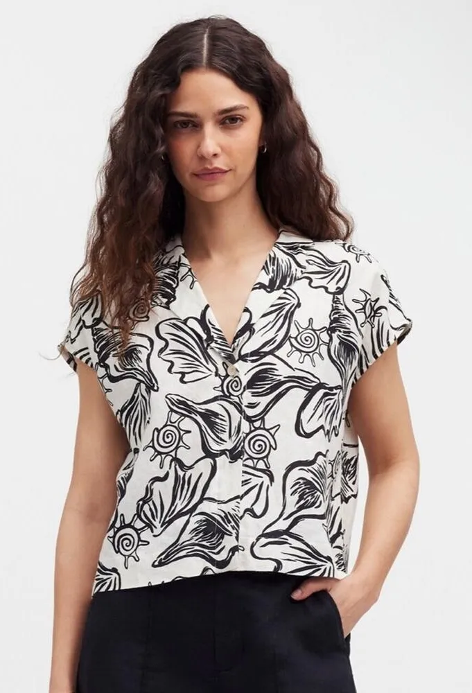 Madewell 100% Linen Boxy Cap-Sleeve Shirt