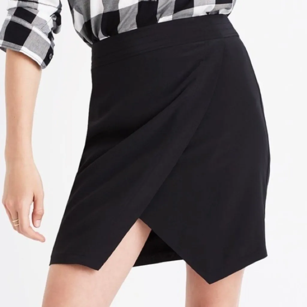 Madewell Silk Parkway Mini Skirt Black A pull-on silk skirt with a sleek faux-wrap front—basically... Show more