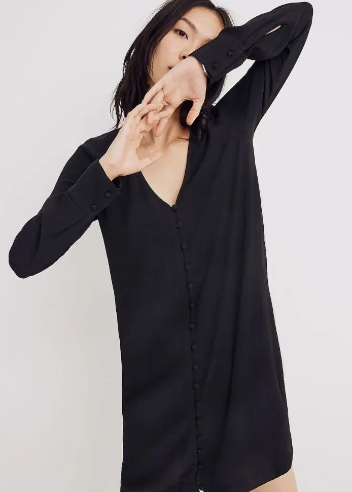 Madewell 2X Women's Heather Long-Sleeve Button-Front Shirt Dress in Black SP21 Great Condition. No... Show more