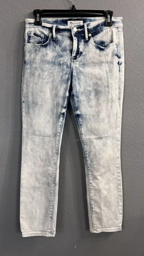 Elevate your denim game with these Madewell Acid Wash Mid Rise Slim Fit Ankle Jeans. Crafted from a... Show more