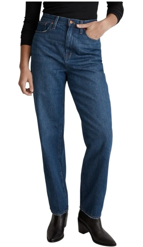 Made-well Baggy Straight Jeans in Dark Worn Indigo Wash. Size 30. 88% cotton, 12% hemp Approx measu... Show more