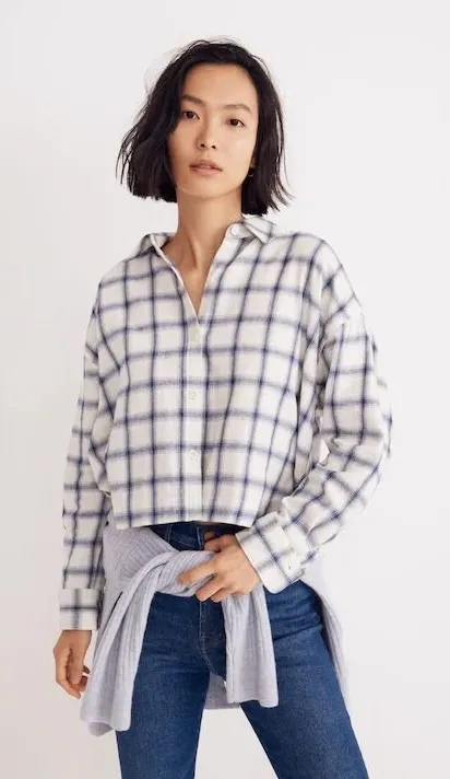 A cropped take on the classic button-up with a shrunken shirttail hem and relaxed shoulders. Butter... Show more