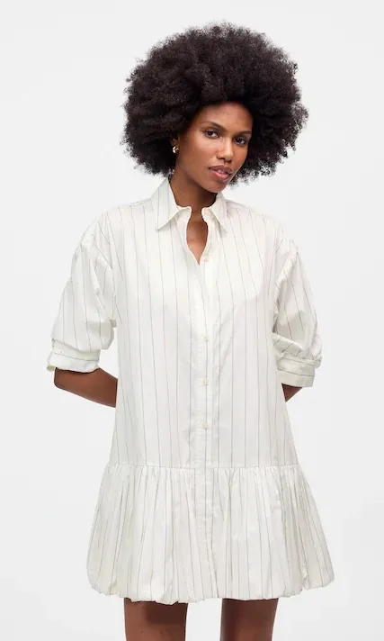 Madewell Bubble Hem Mini Shirtdress in Pinstripe Poplin In White NWT Size Large A modern pinstripe... Show more