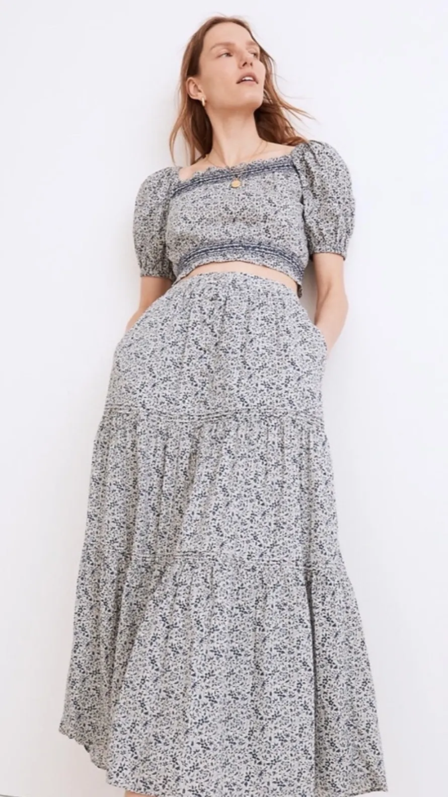 Capture a whimsical, romantic vibe with this darling Madewell two-piece set. The smocked bodice of t... Show more