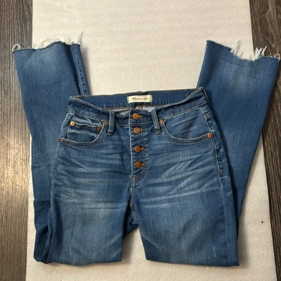 Style: Cali Demi Boot, high rise distressed 5 pocket button fly with frayed hems Color: Blue Size:... Show more