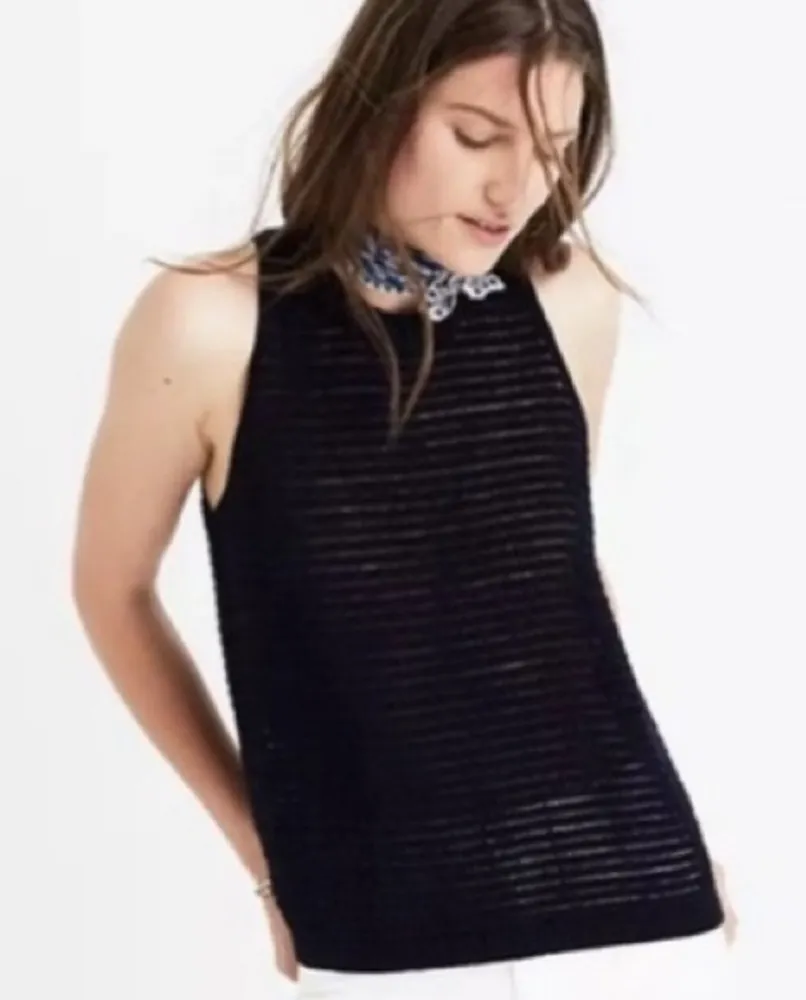 Madewell Camila Openstitch Knit Navy Blue Sleeveless Tank Top 00142 Size XSmall With the look of a... Show more