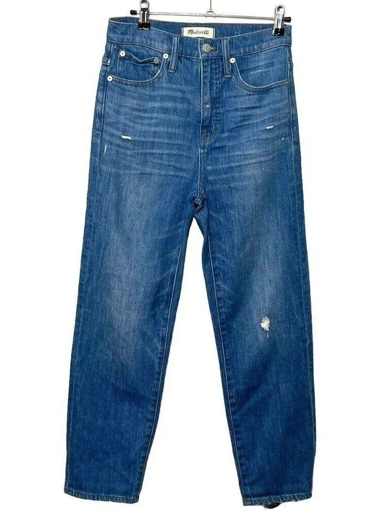 These Madewell Classic Straight jeans in the Novello wash feature a medium blue tone with distressed... Show more