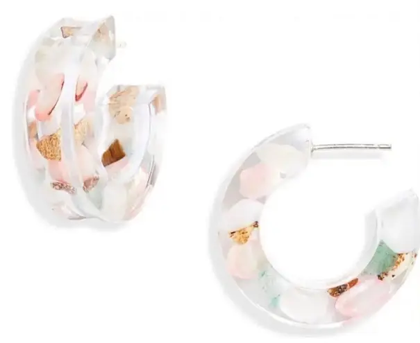 Beautiful madewell confetti acetate hoop earrings in blush multi. Only tried on, never worn.