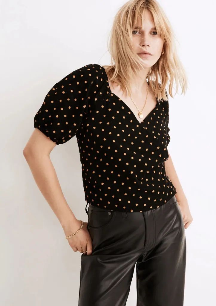 I'm selling a Madewell Corduroy Puff-Sleeve Wrap Top in Oval Dot Size XS for $35. In soft baby cord... Show more