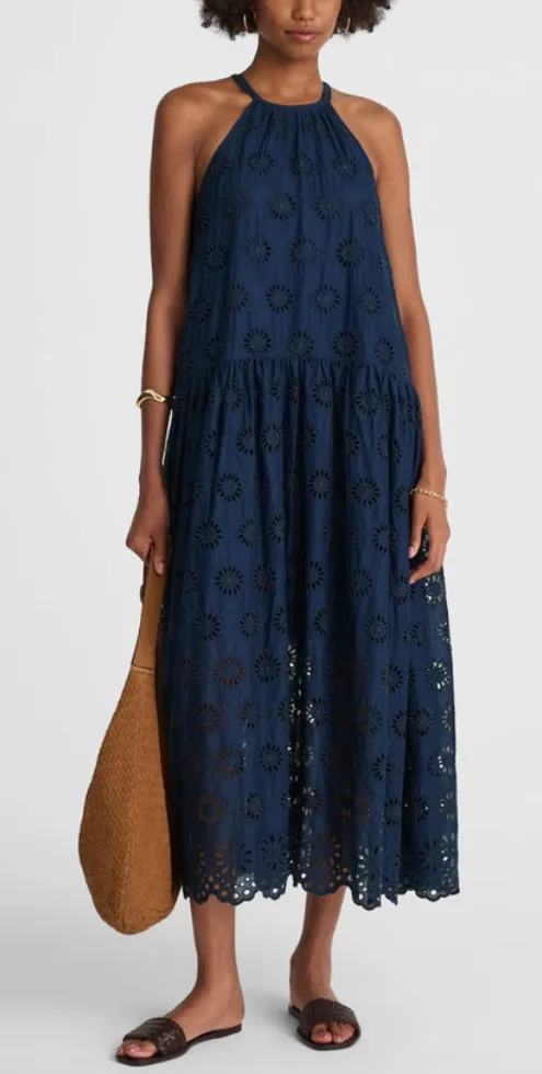 Madewell Embroidered Drop Waist Maxi Dress Size XS Color: Navy Eyelet 2025 Spring Crafted from... Show more