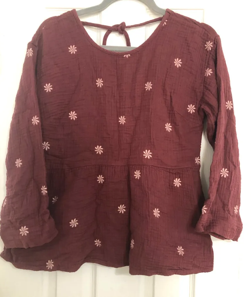 Madewell embroidered floral top with back tie detail women’s size small cotton preowned in good cond... Show more