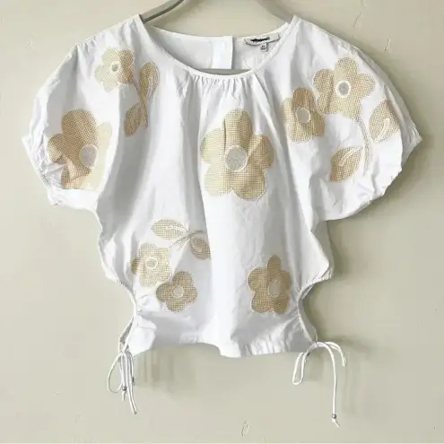 Madewell Embroidered Poplin Puff Sleeve Cutout Crop Top in White Floral - size XS, new with tags! Pl... Show more